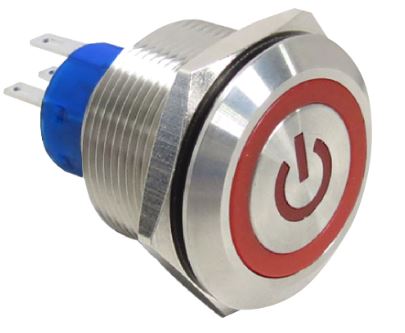 19mm diameter Metal pushbutton High current Long-life IP67, IK08 Illumination | 1,000,000 500,000 | 26A@250VAC | Momentary Lock |